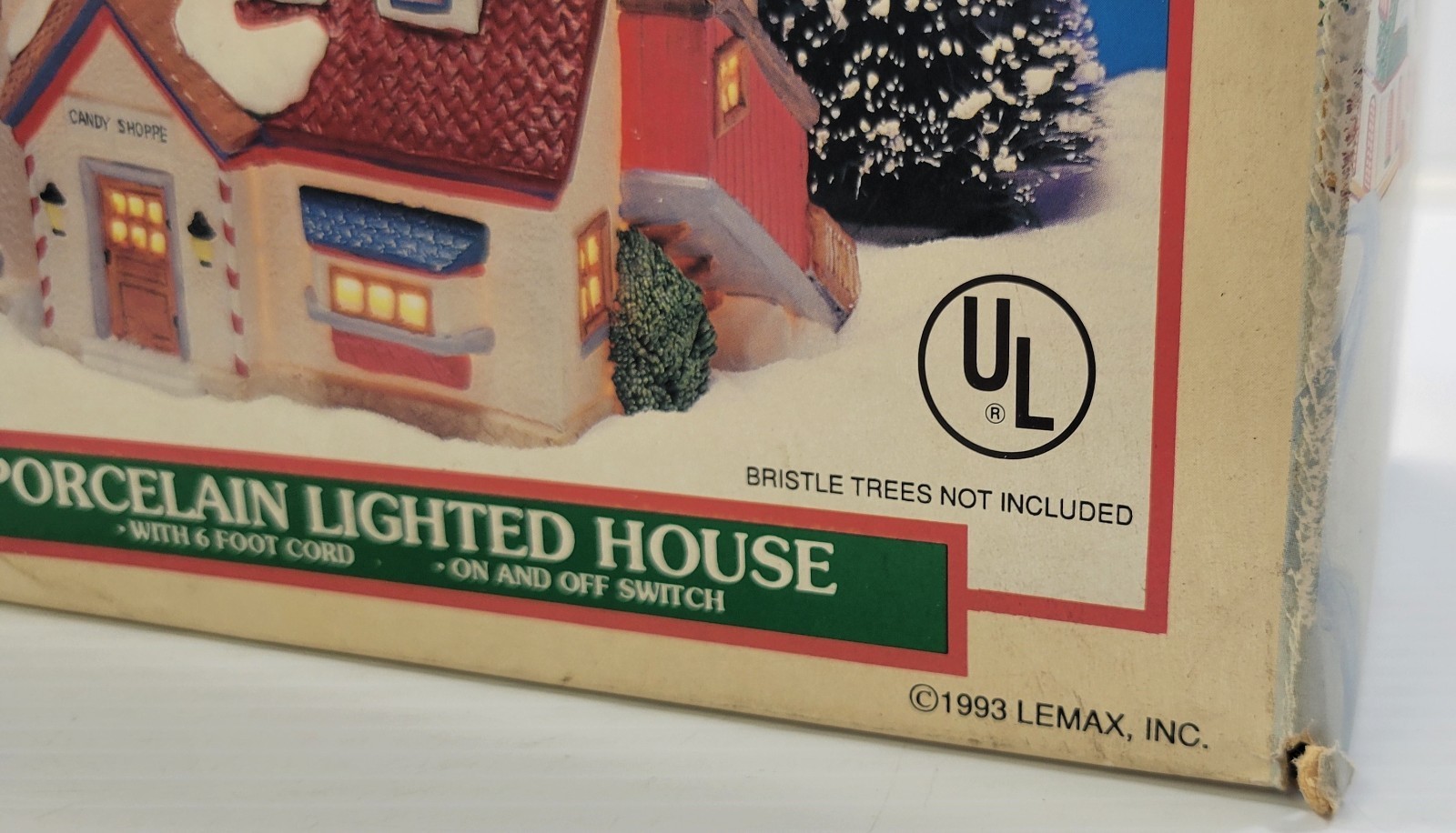 - *A) 1993 Lemax Hearthside Village Candy Shoppe Christmas Porcelain Lighted House