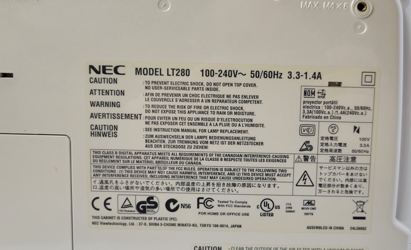 NEC Model LT280 XGA Portable Conference Projector with Carry Bag