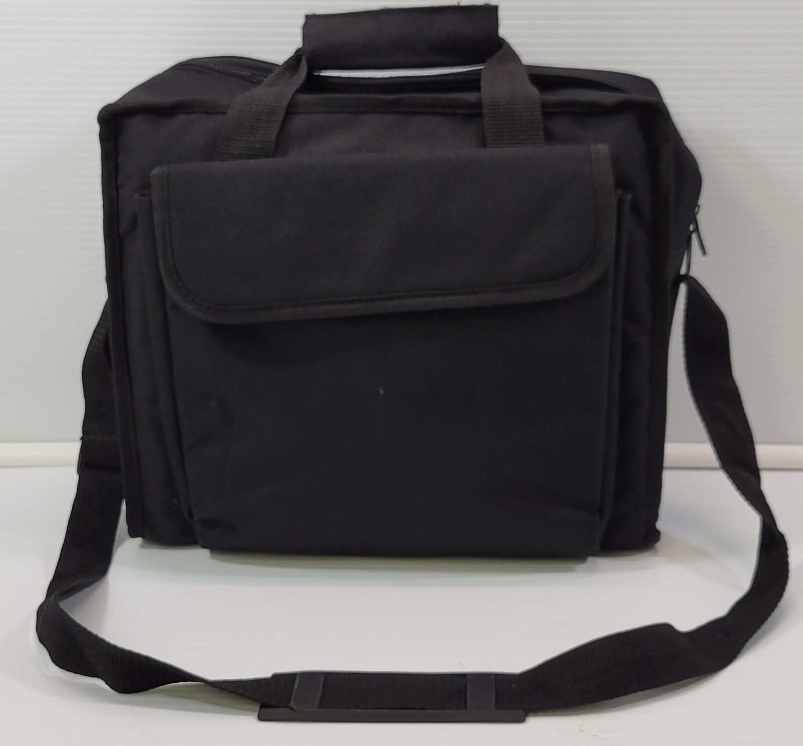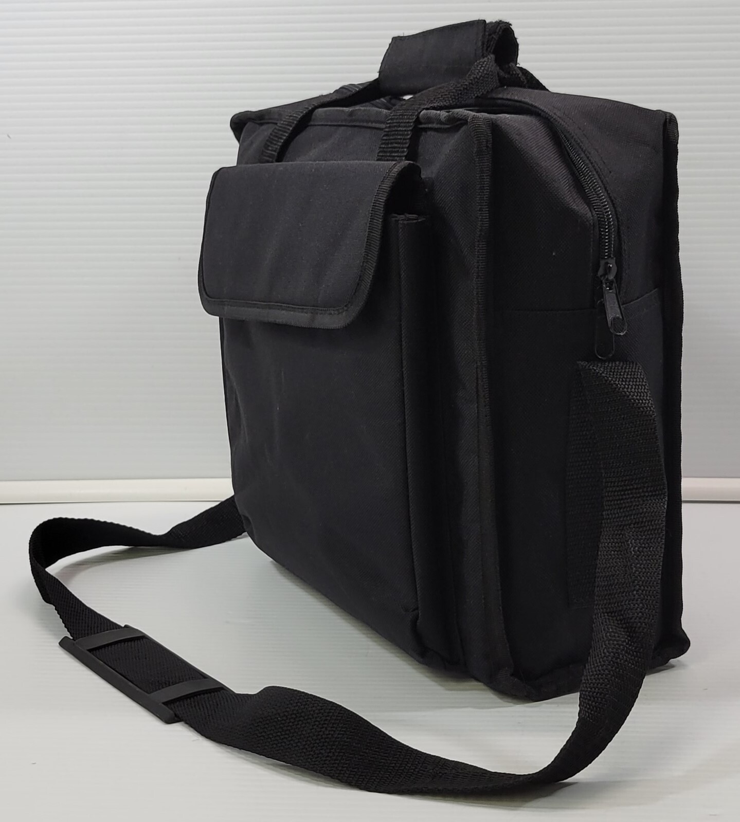 Projector is in overall good used condition with some physical signs of age and use including a few marks and scuffs. Includes the projector, power cord and carry bag but there is no manual, remote or other accessories included.