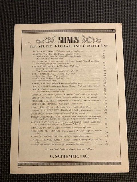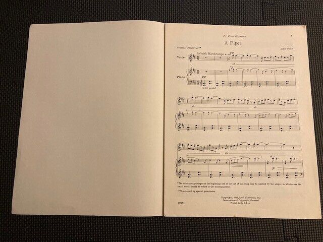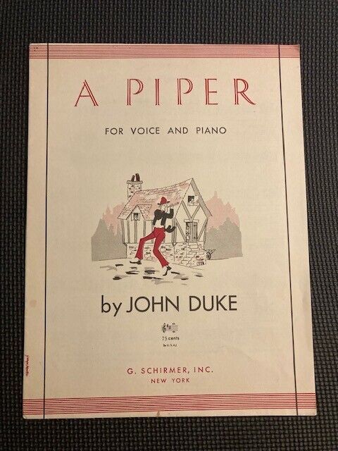 "A Piper" for voice and piano by JOHN DUKE. G Schirmer NY 1949 Overall very good for its age. A couple scuffs and light cover wear.