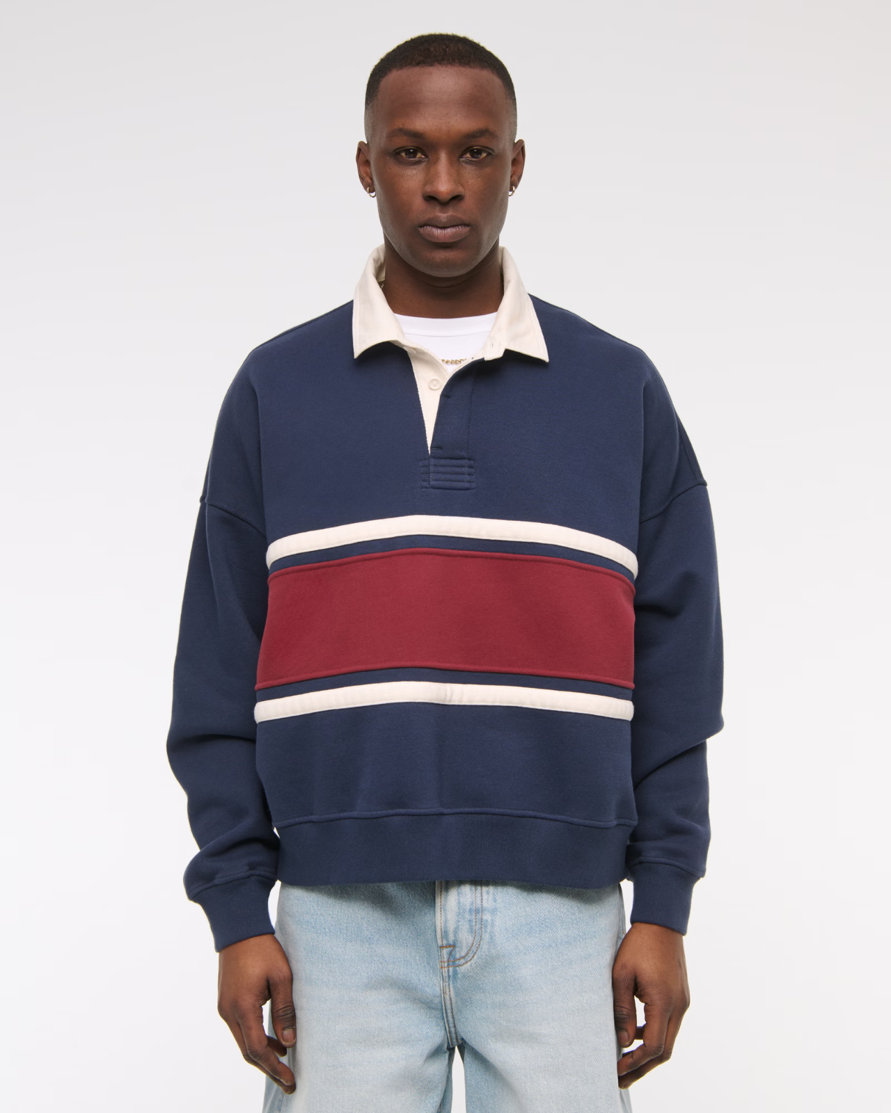 - *ABERCROMBIE & FITCH Cropped Essential Rugby Polo Sweatshirt Large