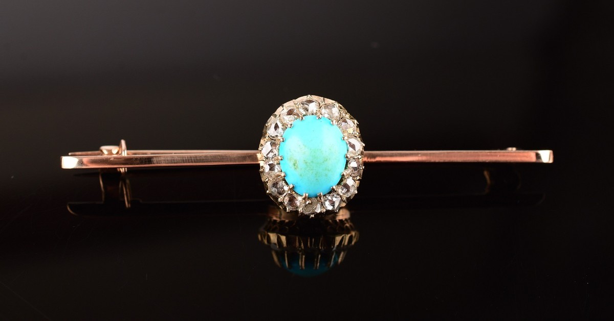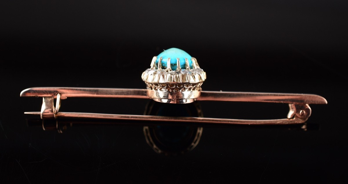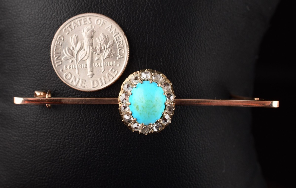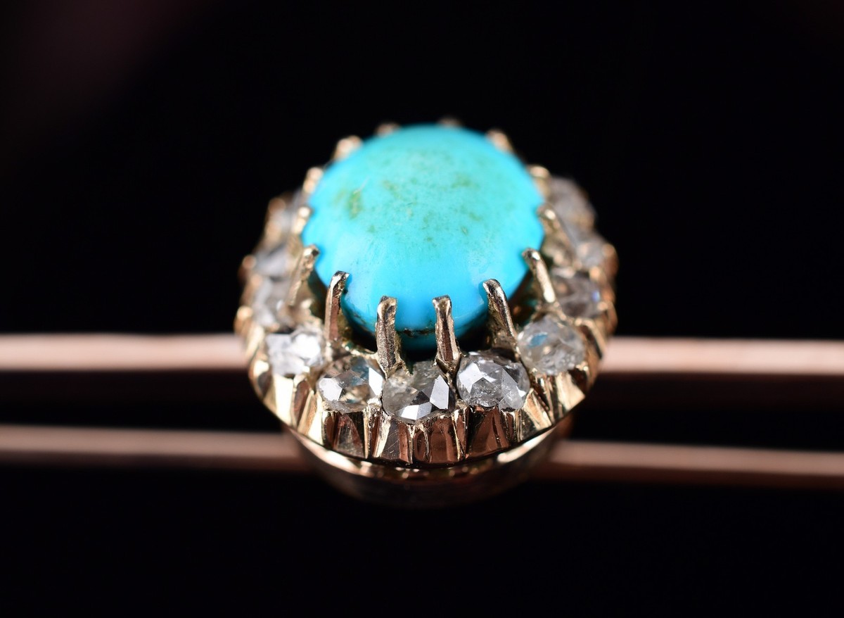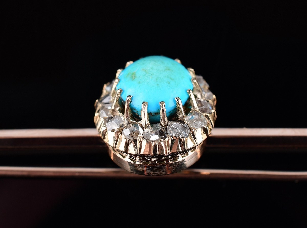 - *Antique Turquoise 14K Solid Yellow Gold Rose Cut Diamond Pin Brooch