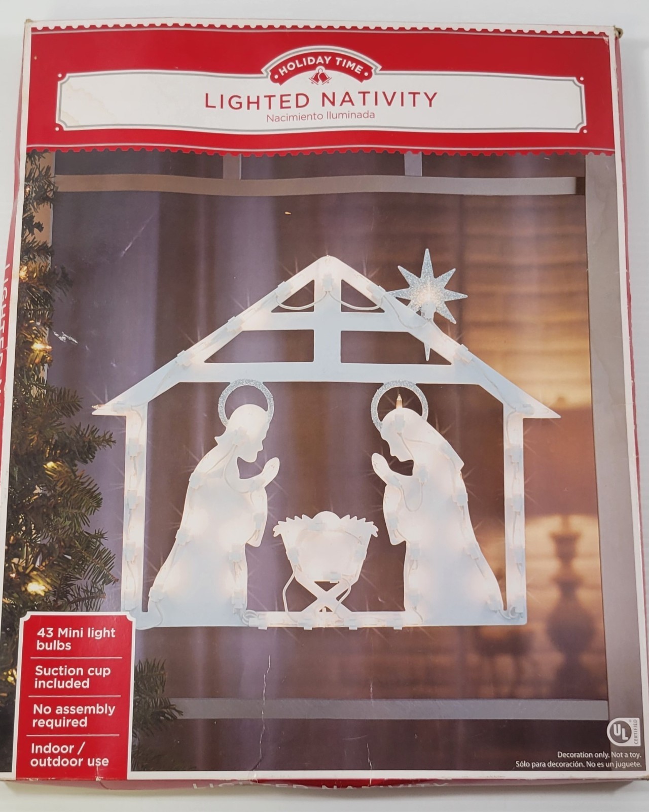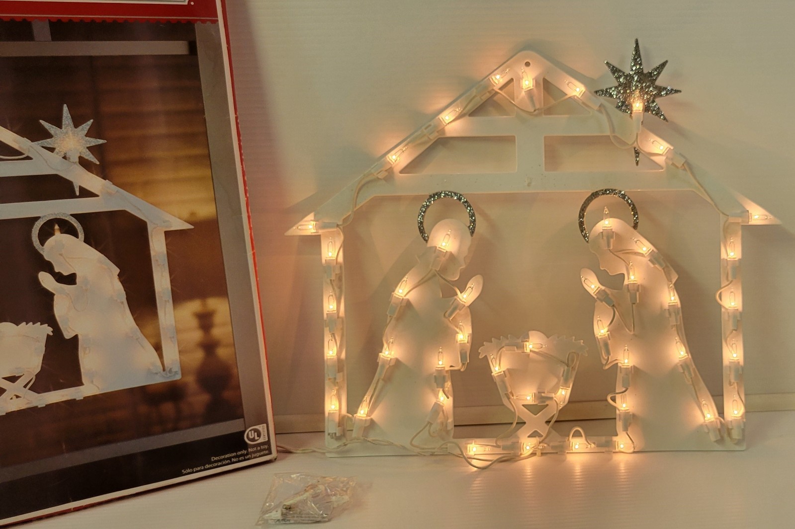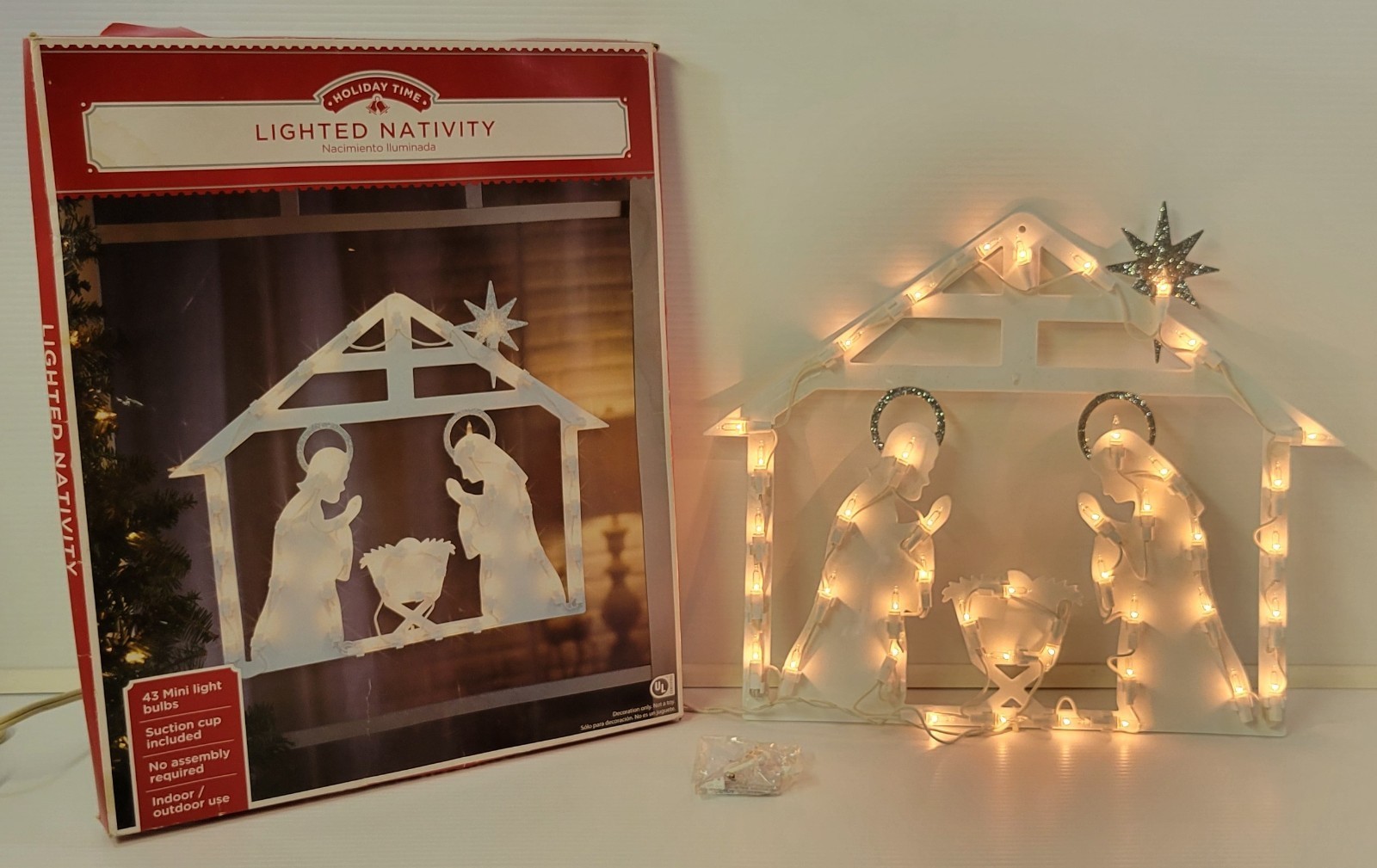 - *B) Holiday Time Lighted Nativity 43 Mini Bulb 17" x 14" Christmas Decoration
