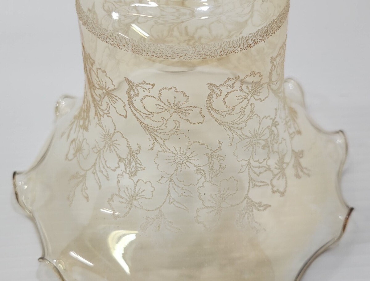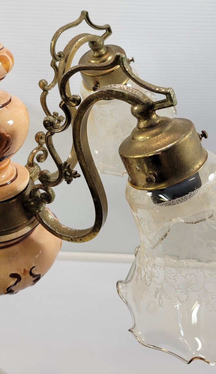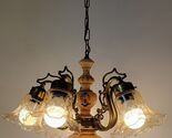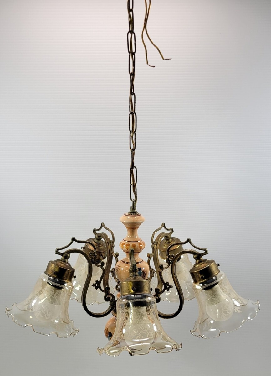 *B) Vintage 5 Arm Porcelain Floral Glass Shade Hanging Light Chandelier