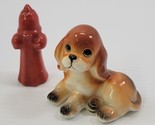 Vintage Beagle Puppy Dog and Fire Hydrant Porcelain Figurine Set