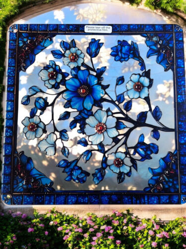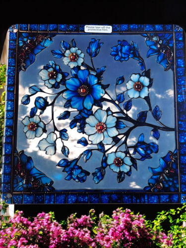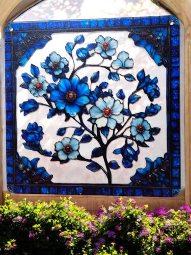 - "Blue Floral Acrylic Suncatcher - 8in Window Hanging Art Panel, Stained Glass