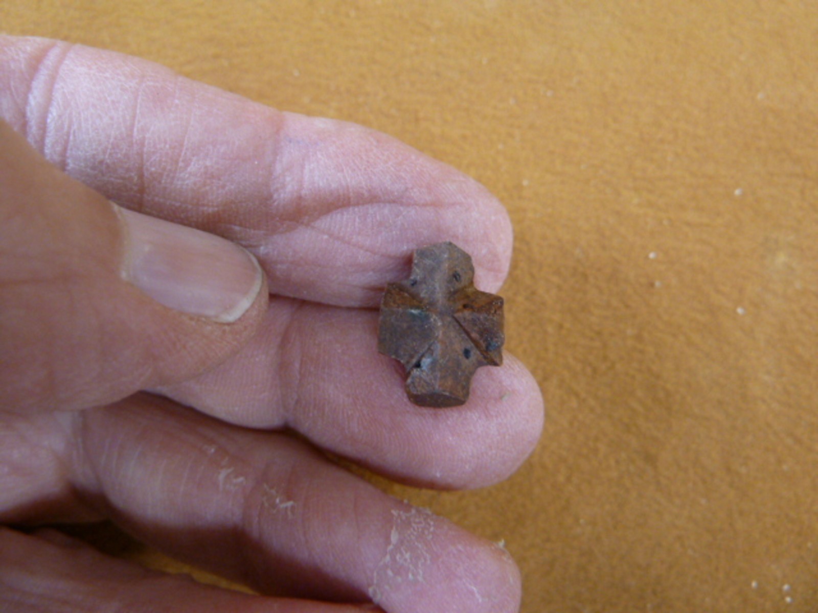 We also drill these and wire as pendants after filing away the softer stone to show the cross more clearly (see our store).