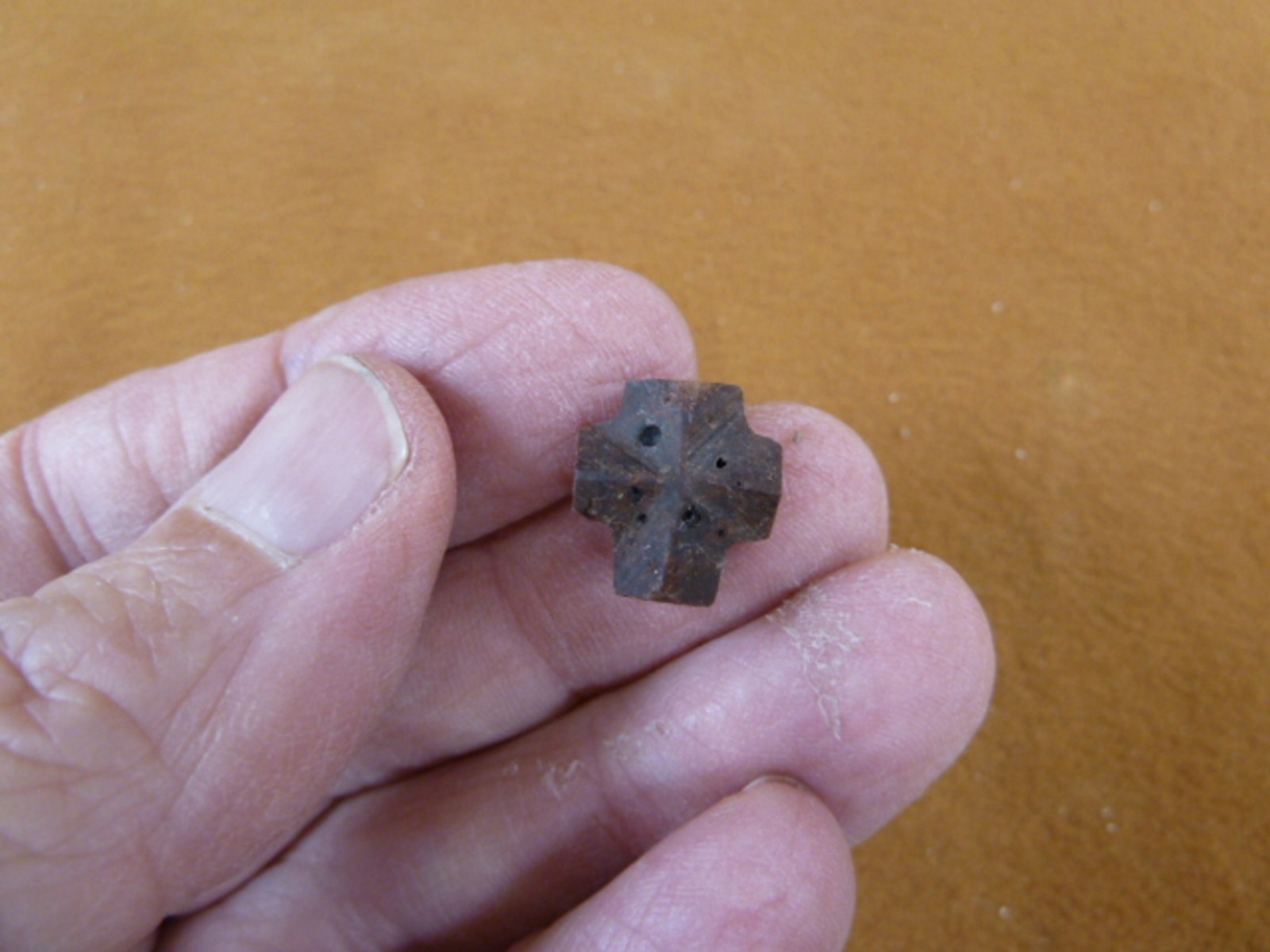 We also drill these and wire as pendants after filing away the softer stone to show the cross more clearly (see our store).