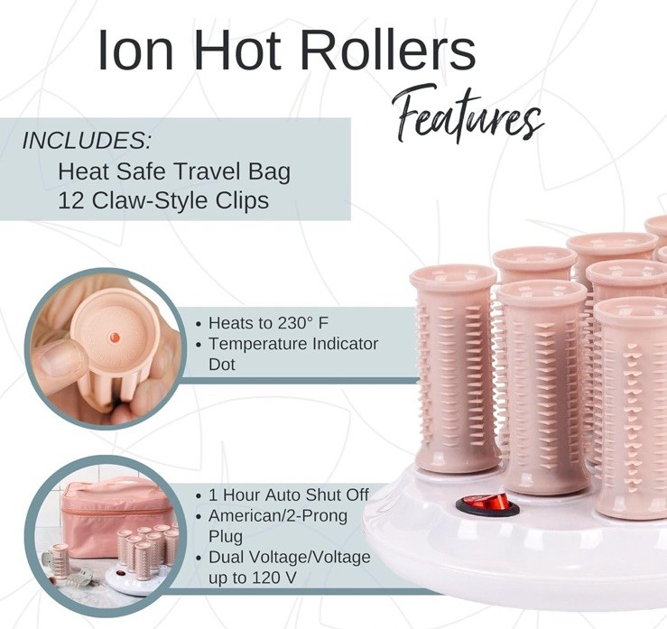 "Calista Ion Hot Rollers 1? long 12pc Set Special Edition Bag QVC Exclusive