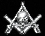 ?Cannons and Cutlasses? Masonic Freemason Pirate Pin in Antique Silver. Measures 1.25? tall. Double pinback.