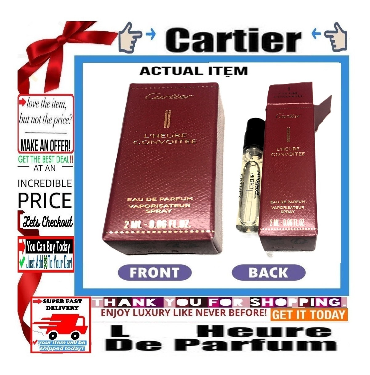 ?S??A??L??E? CARTIER ?? L'Heure Convoitee EAU DE PARFUM ?BUY NOW??? ?Color: Red ??Size: 2 ML ?Formulation: Spray? ?? CARTIER Eau De Parfum L'HEURE CONVOITEE ?? ???CONDITION??? ?NWTGS ??/Brand New GEM???/Original Box?? ?ITEM Fully Tested for Functionality Everything Works? ?Please Refer to Photos for Desc?