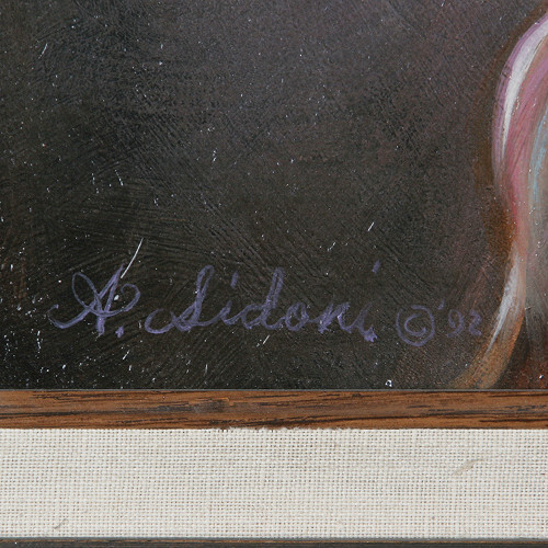 Nato a Buffalo, New York, Anthony Sidoni (1919-2012) era un artista autodidatta con un talento naturale straordinario. Ha iniziato disegnando ritratti da bambino e la sua abilita e stata presto riconosciuta dal famoso artista petrolifero italiano, Tony Sisti, che ha dato ad Anthony diverse lezioni durante la lezione di pittura della comunita locale. Alla fine degli anni '60, Anthony espose arte in una mostra d'arte insieme al famoso artista Julian Ritter e in seguito ricevette il suo primo spettacolo da solo nella Galleria di Jane Freeman. Fu dopo questo che Anthony ottenne un vasto riconoscimento internazionale. Ha vissuto e dipinto a West Hollywood, in California, ed e stato votato "Artist of the Year" nel 2000 e nel 2001. (Fonte: QART)