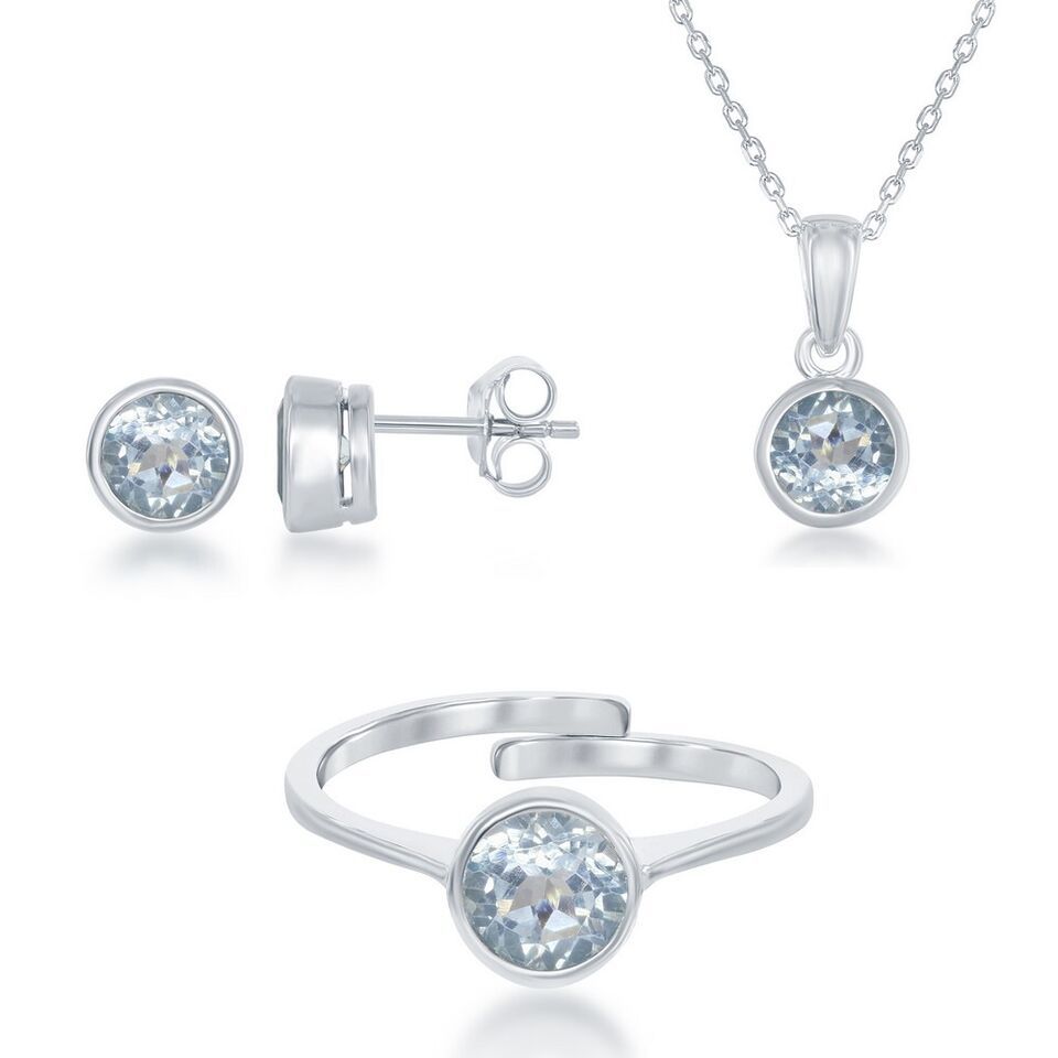 "December Birthstone" Sterling Silver Blue Topaz Set