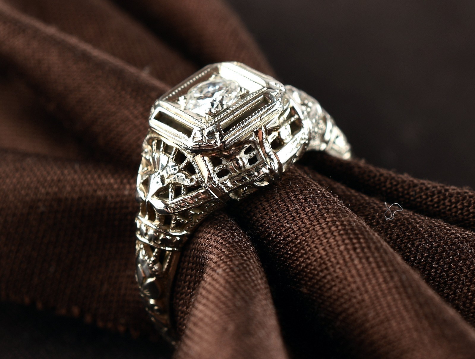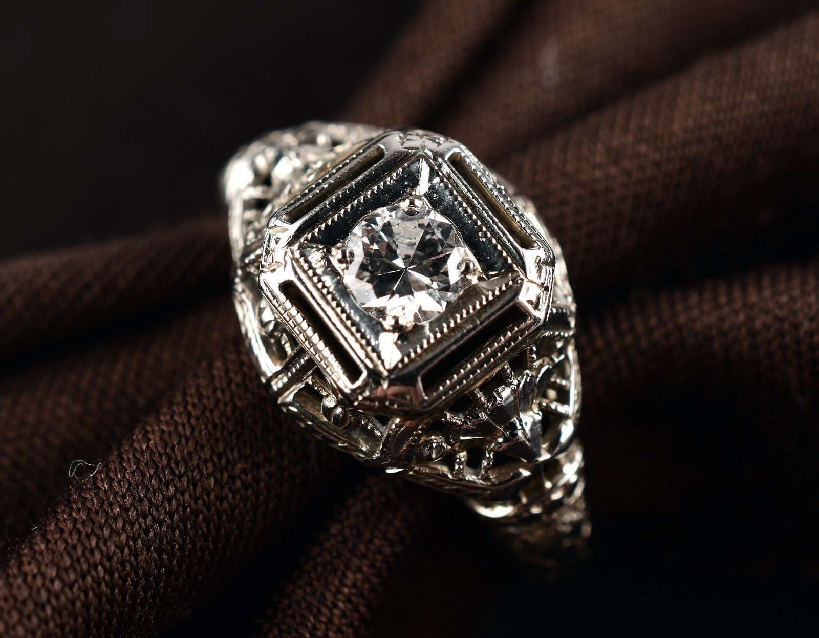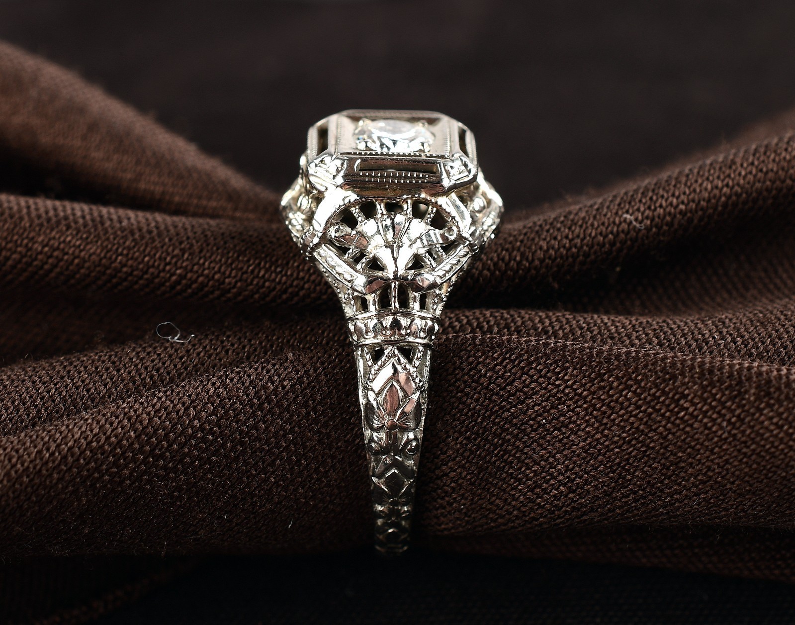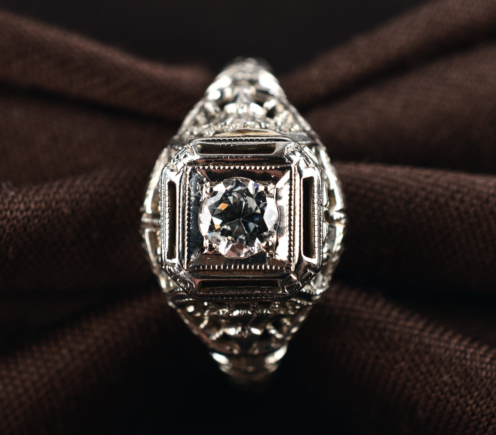 - *Elegant Antique Art Deco 18k White Gold Natural Diamond Ring Size 5