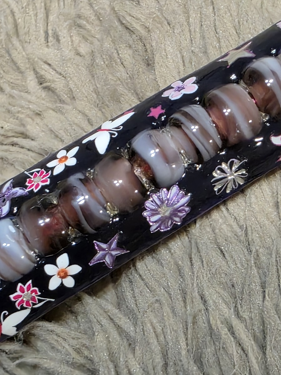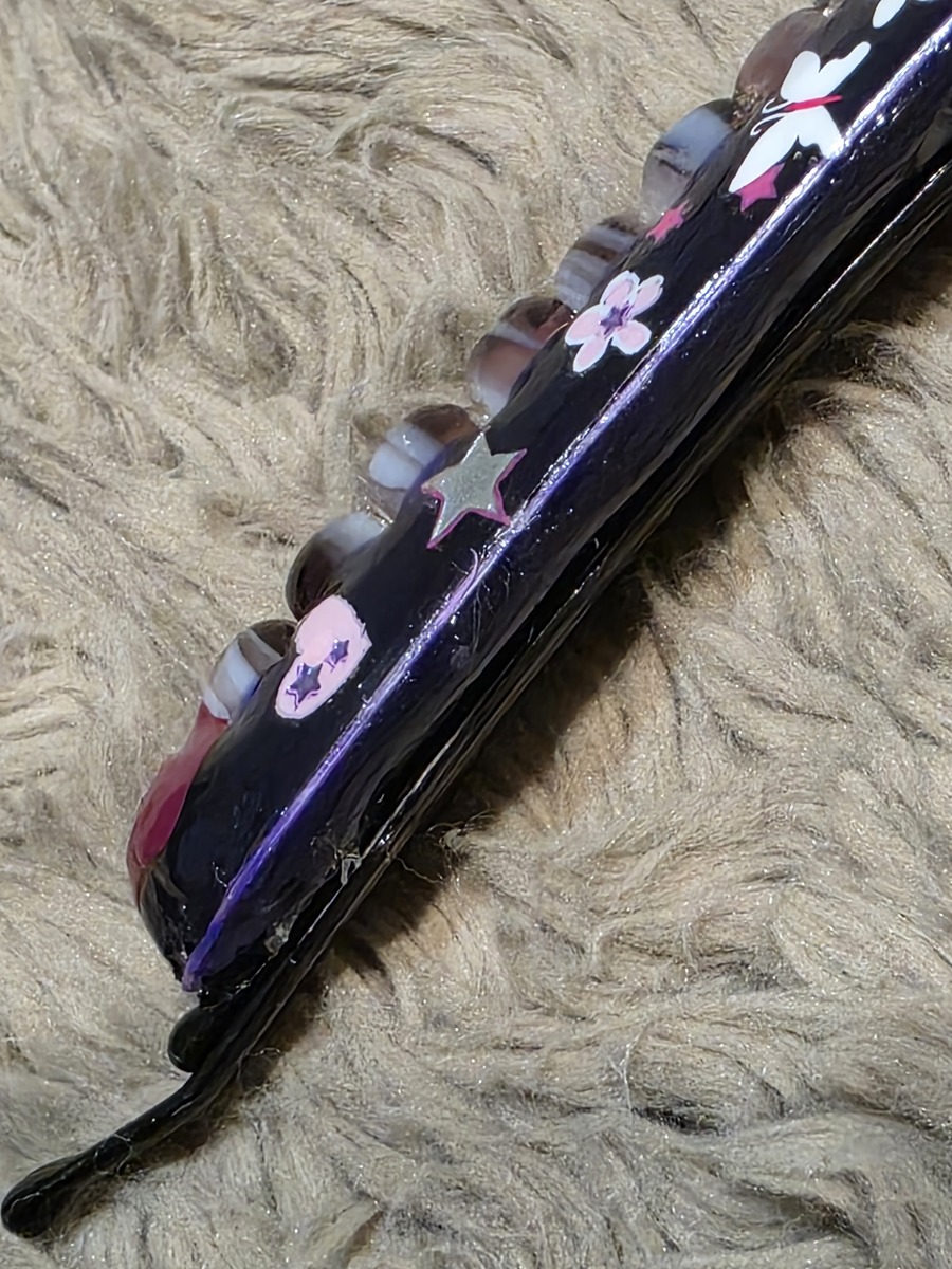 This Bobby.......Fresh out of FRANKENSTIENstudios.........could possibly contend for the INTERNET book of records,as the LONGEST bobbypin in cyberspace!!.........That's correct.....@ exactly 4.400 long its jus over the 3/8 mark........quite the conversation opener i'd say?........Times 3 Liquid Glass insure the art and its Stained Glass Enamel body.......last indefinitely...........feel free to scroll corridor as 100d's of AWESOME Hairglam items are available.........THANKS! welldressedattic.