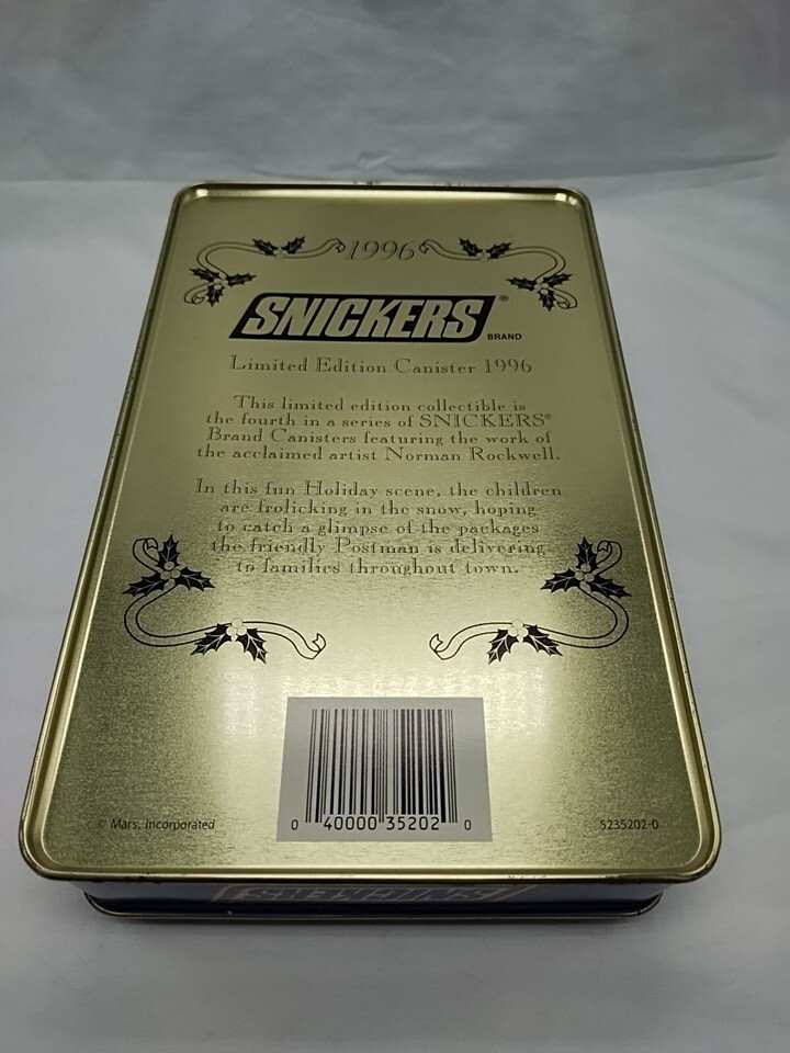 - *Empty Tin* Vintage 1996 Snickers Limited Edition Canister 5 1/2" X 8 3/4" X 2"