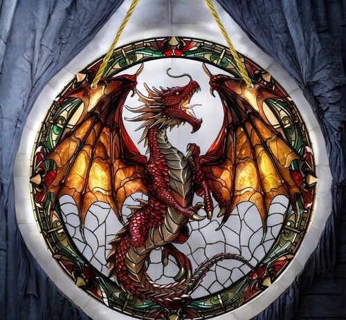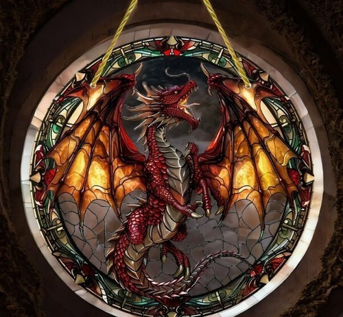 - "Fiery Red Dragon Sun Catcher - Bold Mythical Decor for Home and Window Display"