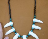 - (G157-70) big 1-3/4" GATOR T**TH onyx + turquoise 22" Necklace Alligator TEETH