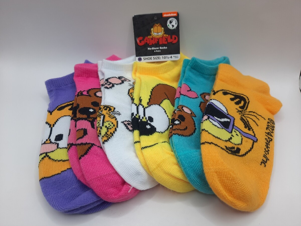 - "GARFIELD" NO SHOW SOCKS - 5 PAIRS - SHOE SIZE 10½-4 NWT Tag Ripped Off