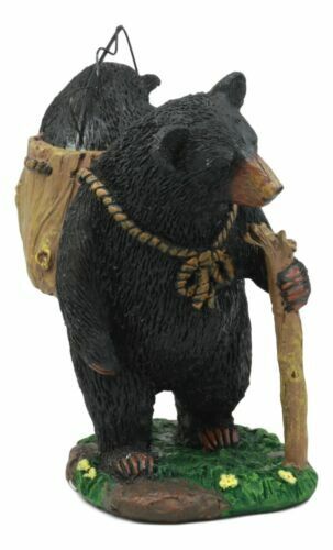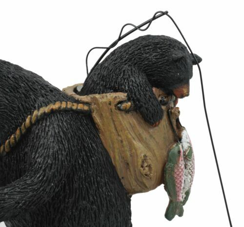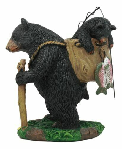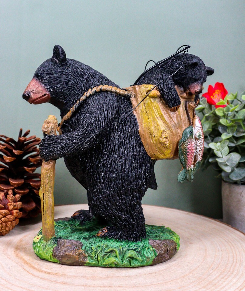 - "Gone Fishing" Mother Black Bear With Cub In Fishing Backpack Statue Wildlife