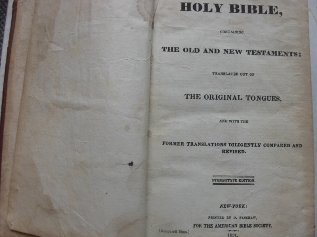 Former translations Diligently Compared and Revised, Stereotype Edition. New Testament title page translated out of the original Greek.
