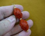 - (J-22) RED TURNED CINNABAR Pendant necklace carved wood lacquer bead jewelry
