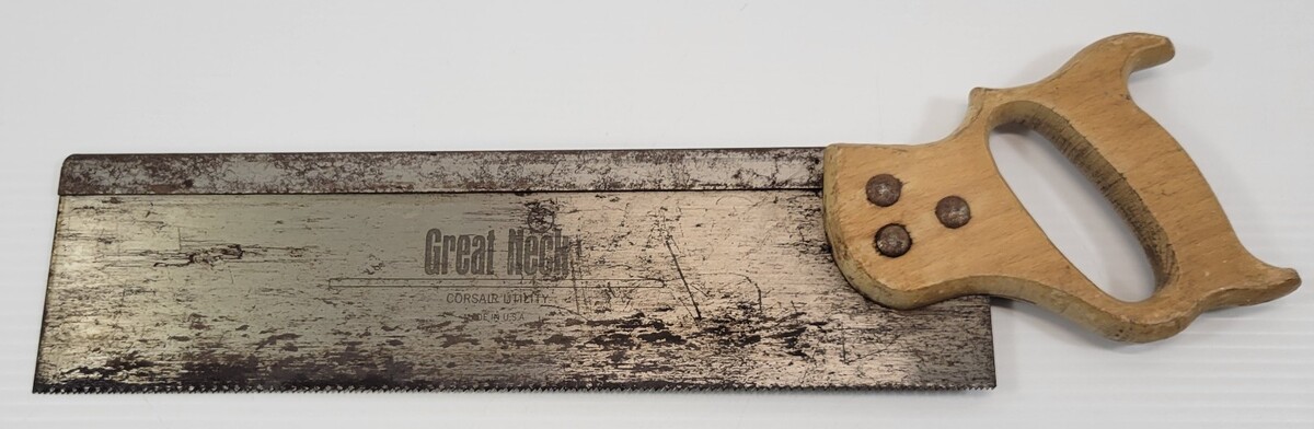 - *J1) Vintage Great Neck Corsair Utility 14" Mitre Hand Saw Wooden Handle