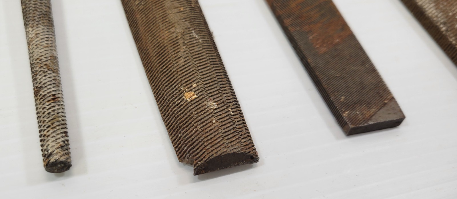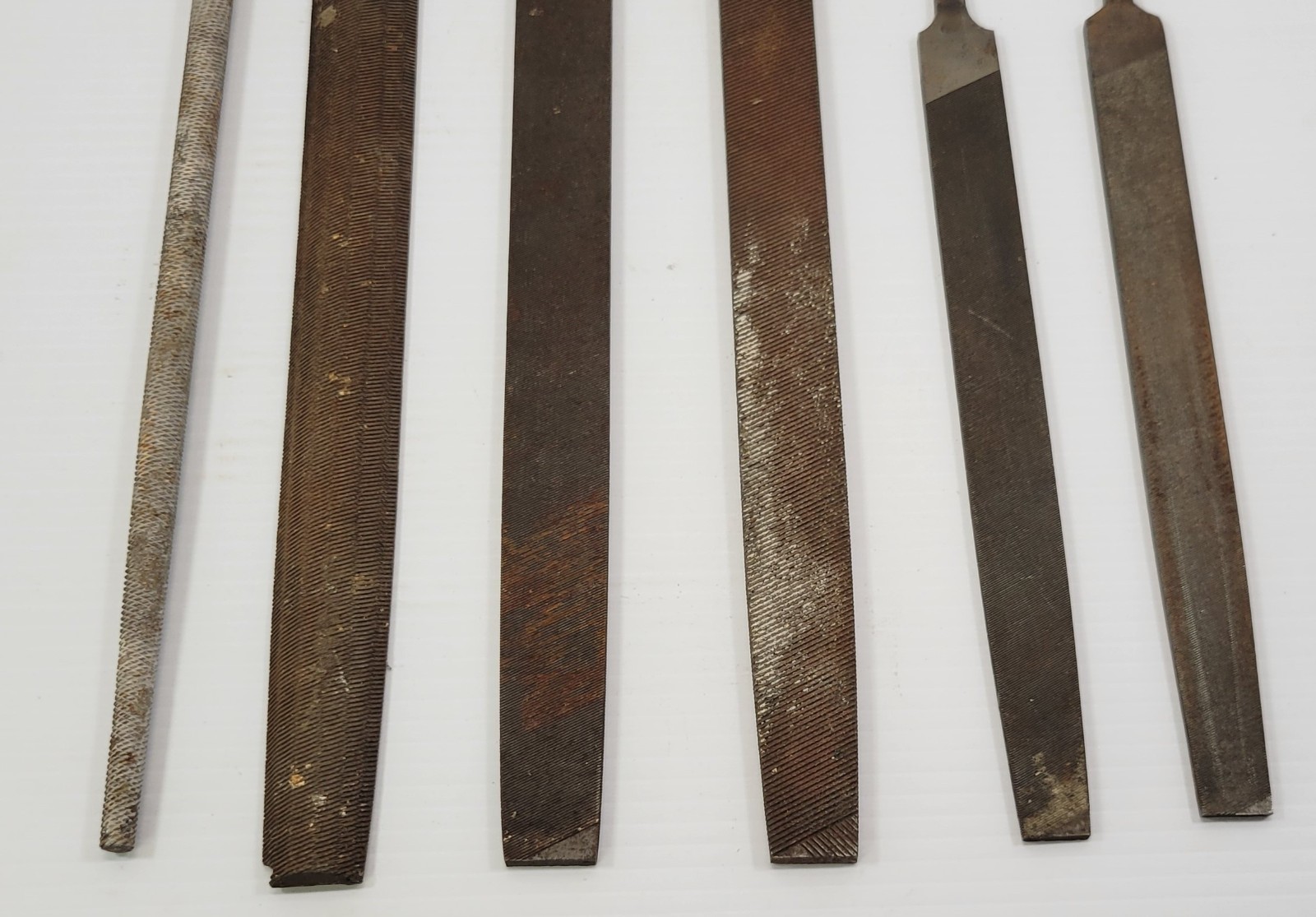 Files are vintage used old shop/garage equipment with signs of age, use and years of storage. Most are either unmarked or unable to be read due to age.