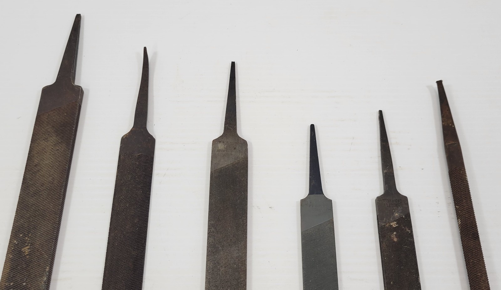 Files are vintage used old shop/garage equipment with signs of age, use and years of storage. Most are either unmarked or unable to be read due to age.