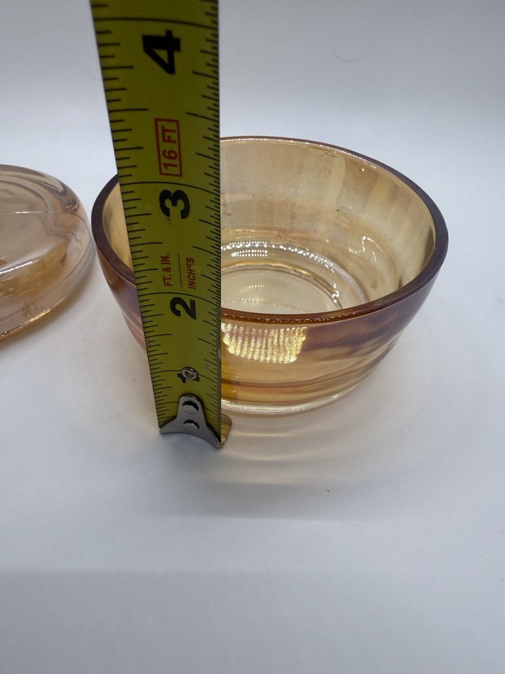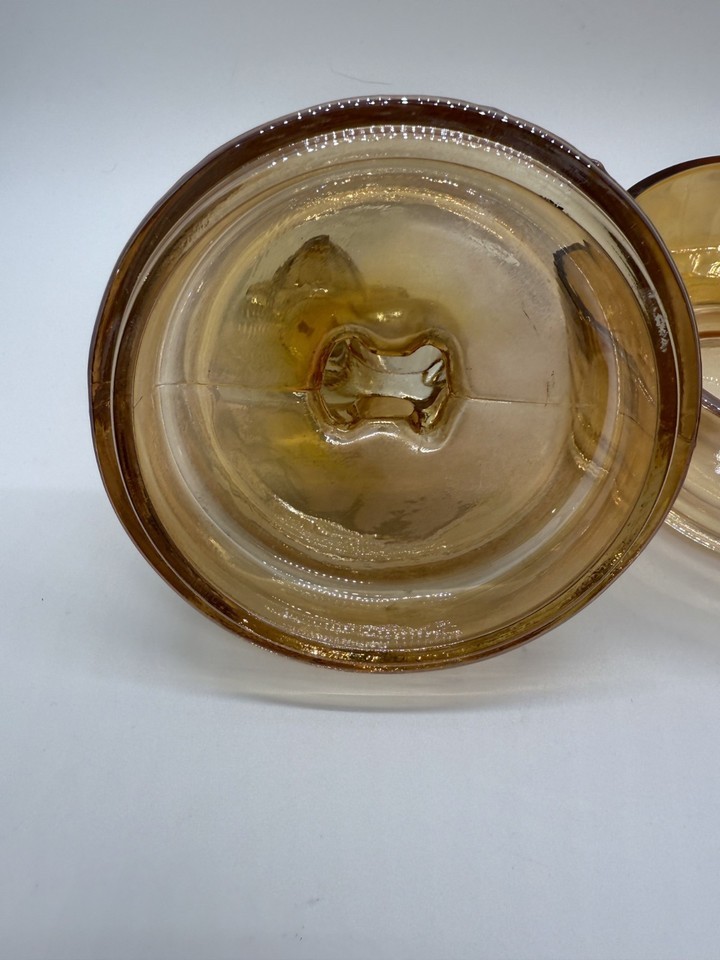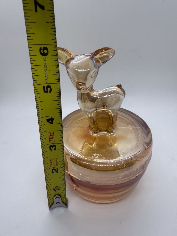 ✨Jeannette Glass Amber Deer Powder Jar – Vintage Vanity Trinket Box – Depression