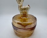 ✨Jeannette Glass Amber Deer Powder Jar – Vintage Vanity Trinket Box – Depression