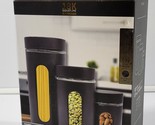 - *L) Set 3 Tahari Home Signature Stainless Steel Glass Black Canister 17TS124BK