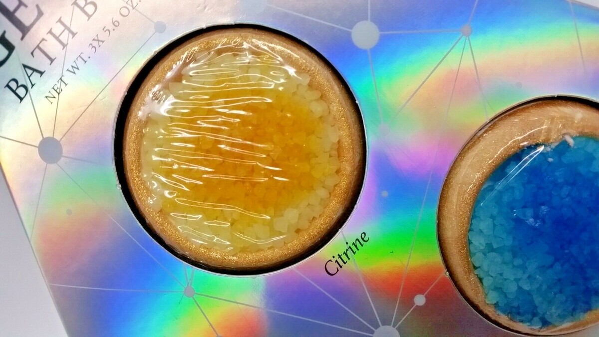 ( LOT of 2 ) SpaLife Geode Bath Bomb 3pc Set Citrine, Rose Quartz Aquamarine Large 5.6 oz Each