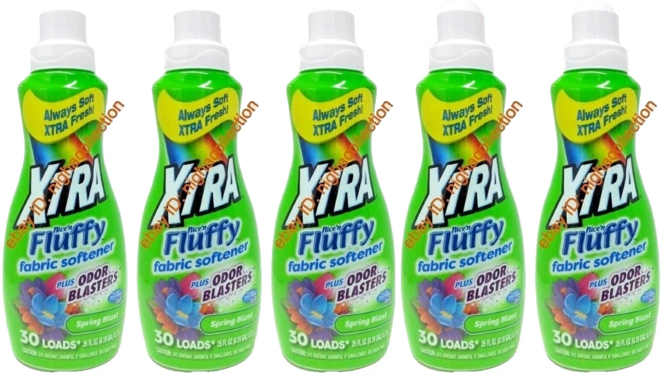( LOT of 5 ) xtra nice'n Fluffy Liquid Fabric Softener Spring Blast 25 oz Each = 150 Loads