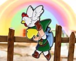 - "Legend of Zelda Link with Cucco Enamel Pin - Adorable Retro Gaming Accessory"