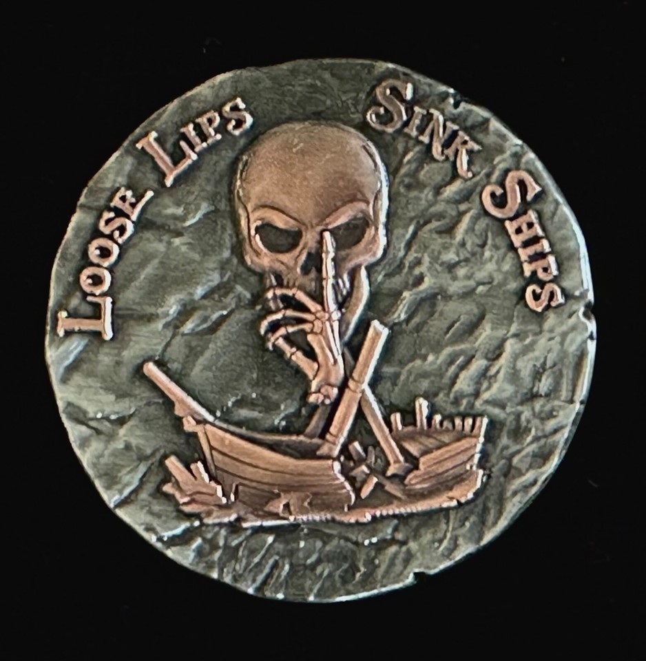 “Loose Lips Sink Ships” Pirate Challenge Coin, 1.75”, Two Tone EDC