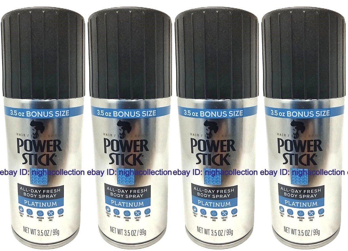 ( Lot of 4 ) Power Stick "PLATINUM" Body Spray Deodorant