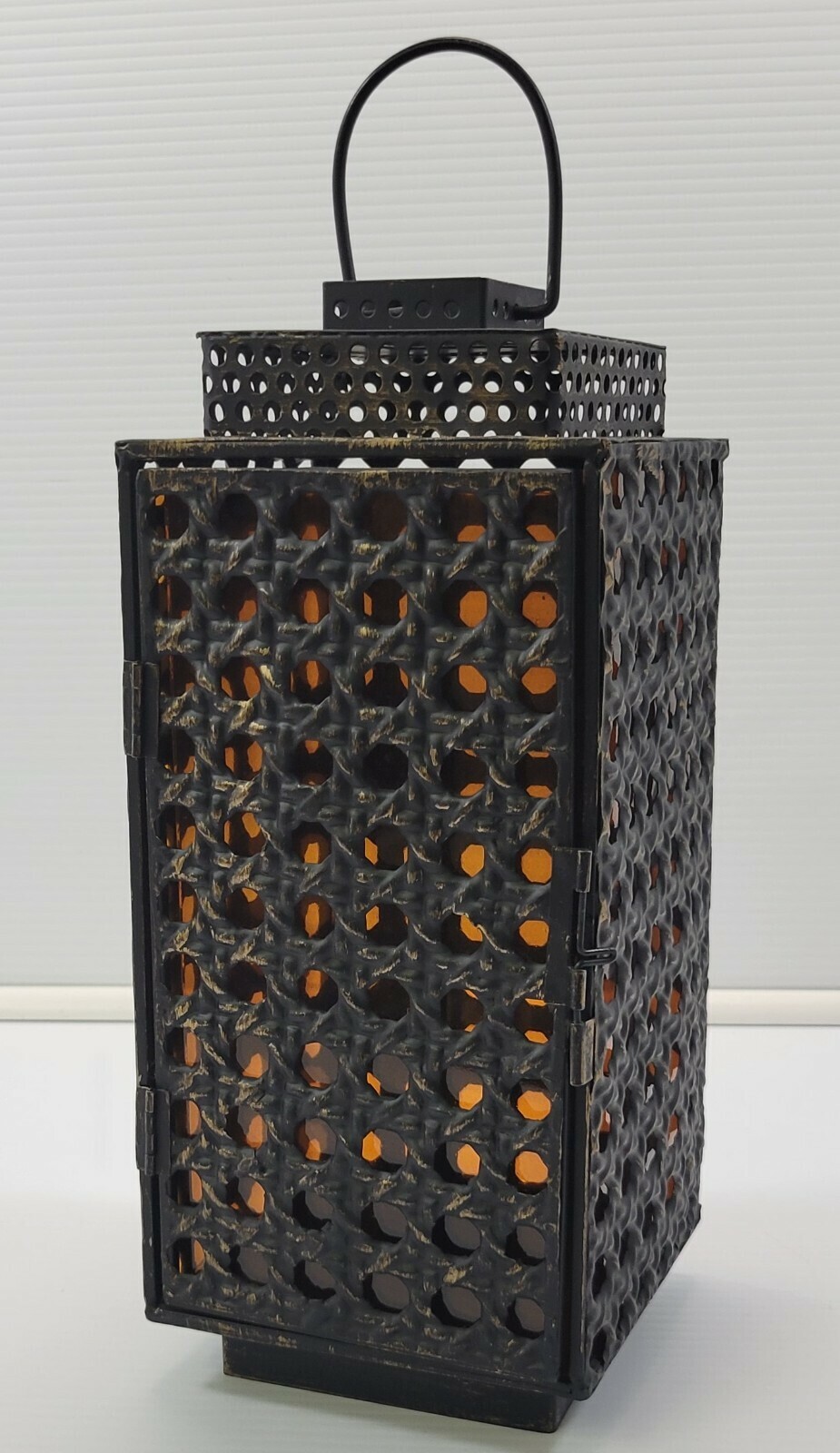 - *MS) Metal and Amber Glass Tealight Candle Holder Lantern