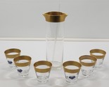 *N) Vintage Javit Crystal Set 6 Glasses with Pitcher and Glass Stir Stick USA