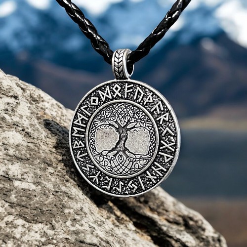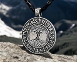 “Norse Tree of Life Pendant Necklace with Viking Runes”