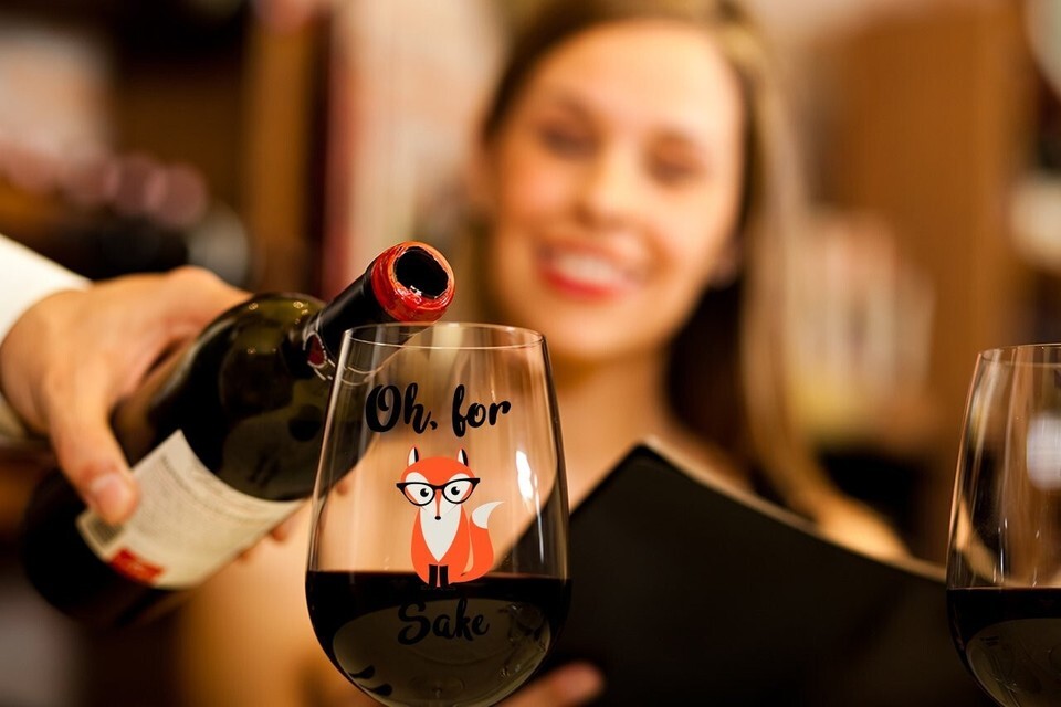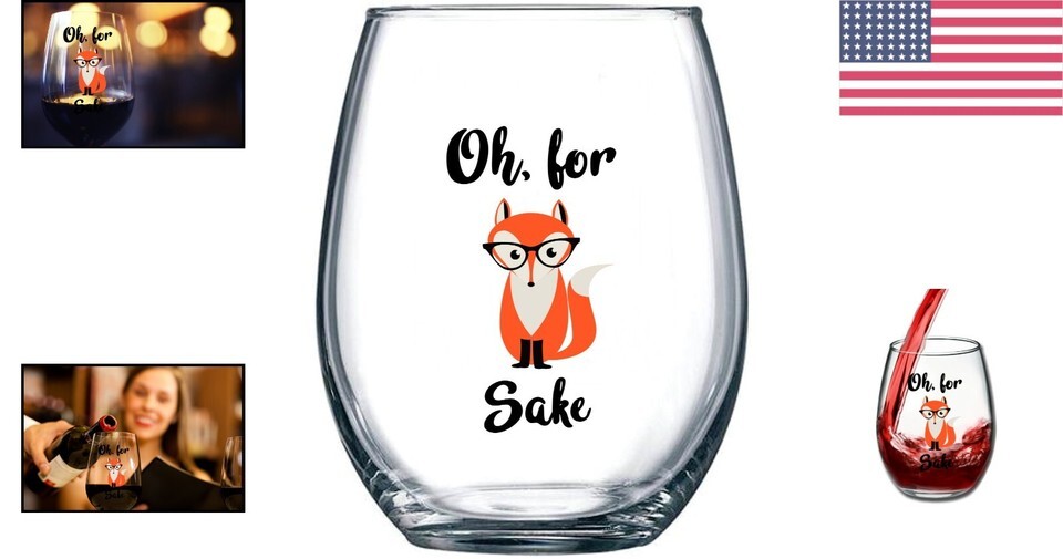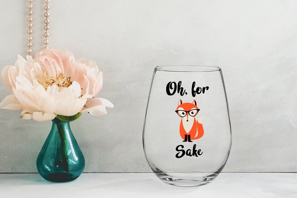 - 'Oh, For Fox Sake' 15 oz Stemless Wine Glass - Ideal Birthday Gift for Him/Her