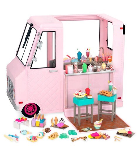 The 18-inch doll complexioned in light tones is included in the set, along with a brand Our Generation. This doll playset is perfect for children who love music and imaginative play. Get this Our Generation Sweet Stop Ice Cream Truck set today and let the fun begin!