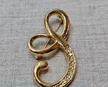 - "S" Initial Gold Tone Cursive Pin Pinback Brooch, 2'' Length, Vintage