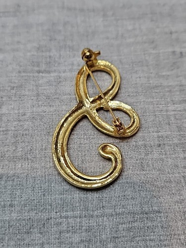 - "S" Initial Gold Tone Cursive Pin Pinback Brooch, 2'' Length, Vintage