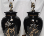 (Set of 2) Vintage Black Asian Style 80’s-90’s Floral Lamp ~ 27” (Large)