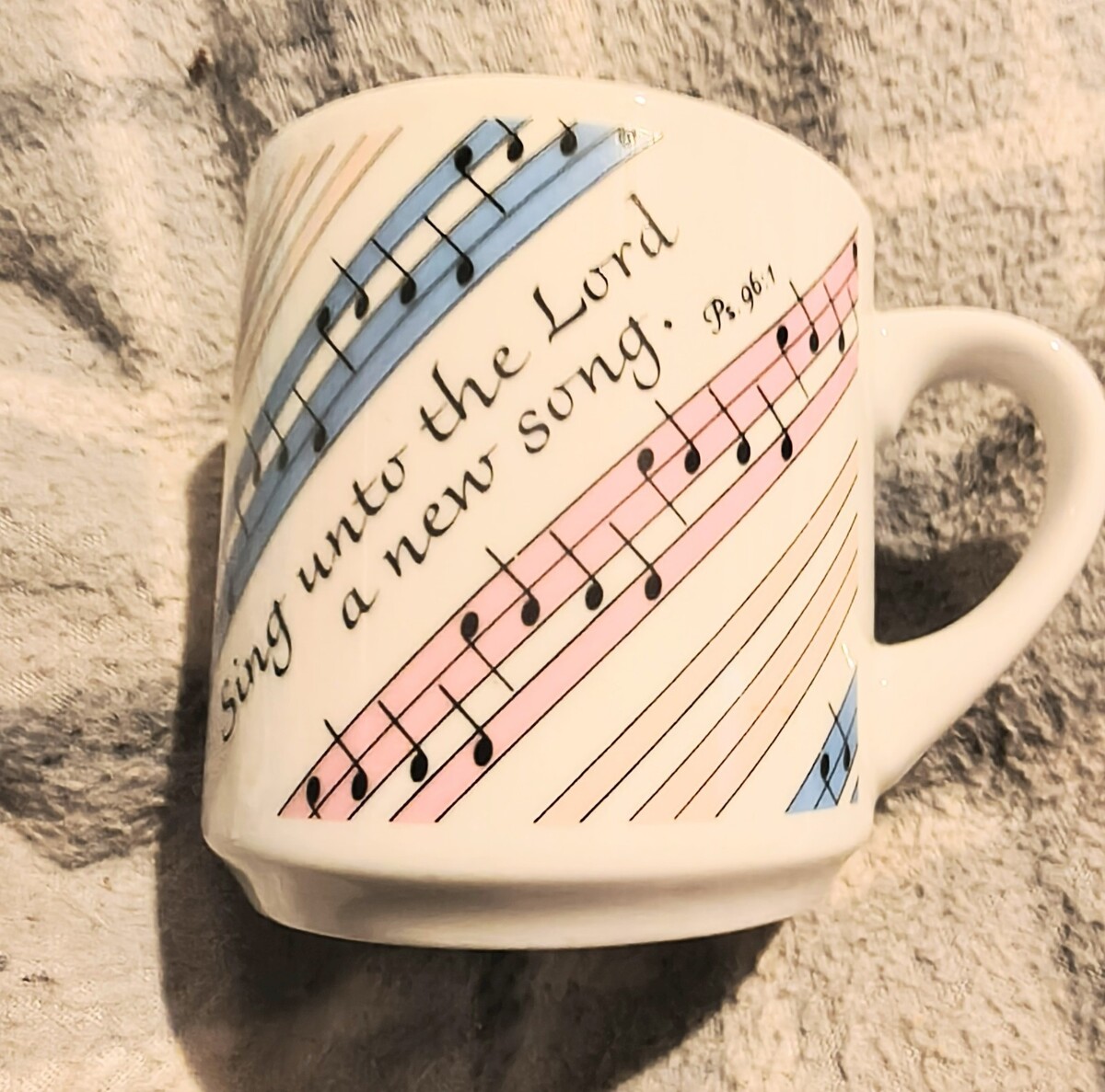 "Sing to the Lord a New Song" Gibson Mug Pink Blue Music Staff Art Cup