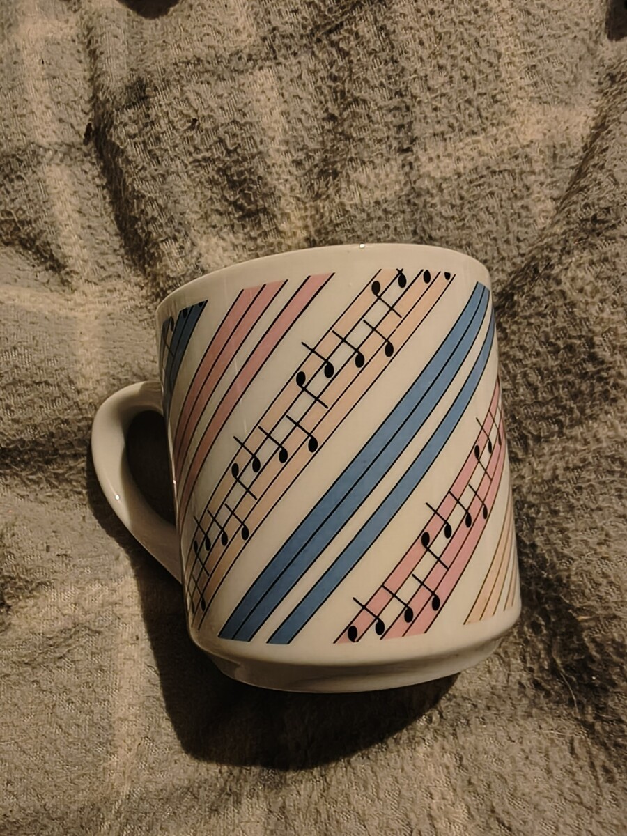 - "Sing to the Lord a New Song" Gibson Mug Pink & Blue Music Staff Art Cup