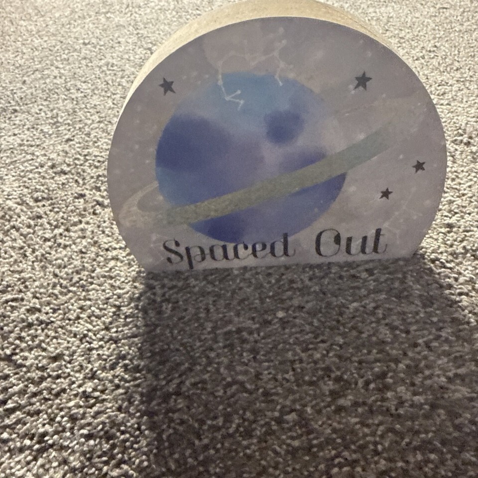 “Spaced Out” - 6”x4.75” Table Home Decor Sign Wood Free Standing Plaque
