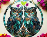 - "Stained Glass Style Owl Art - Elegant Twin Owls Hanging Window Decor"
