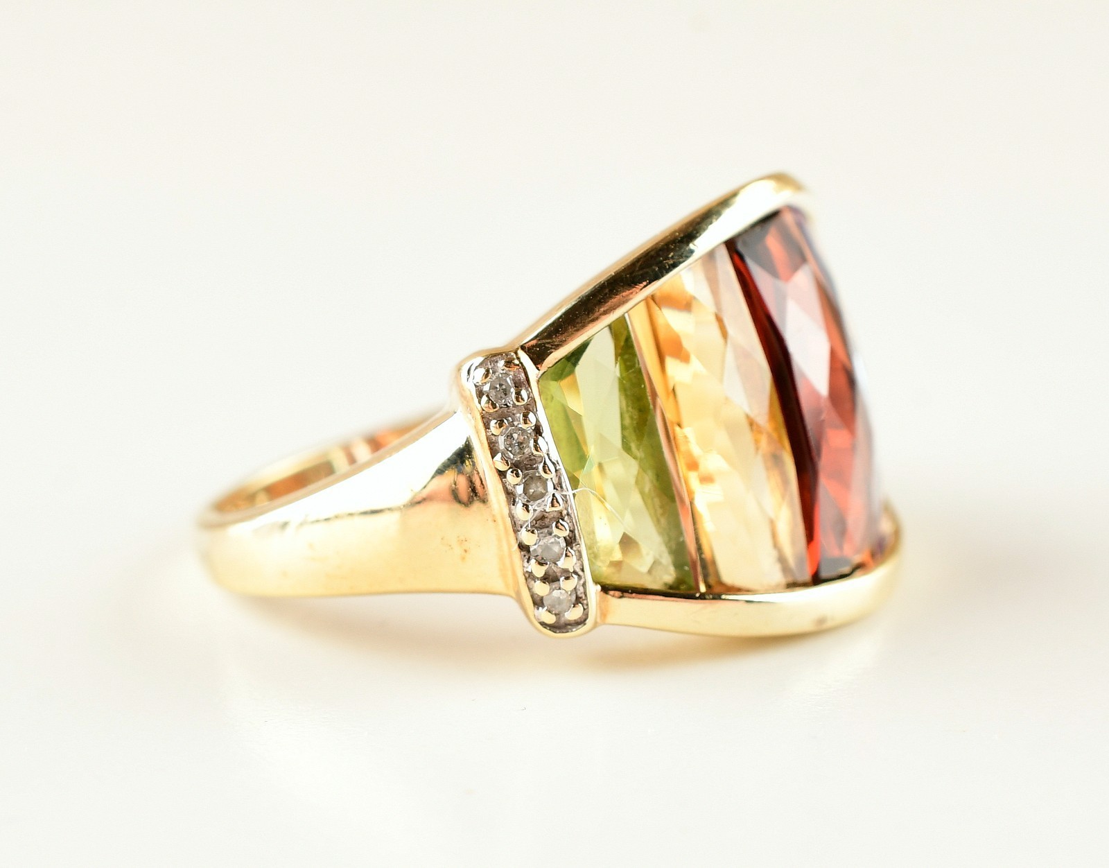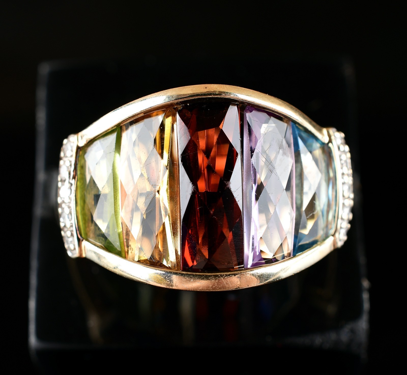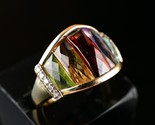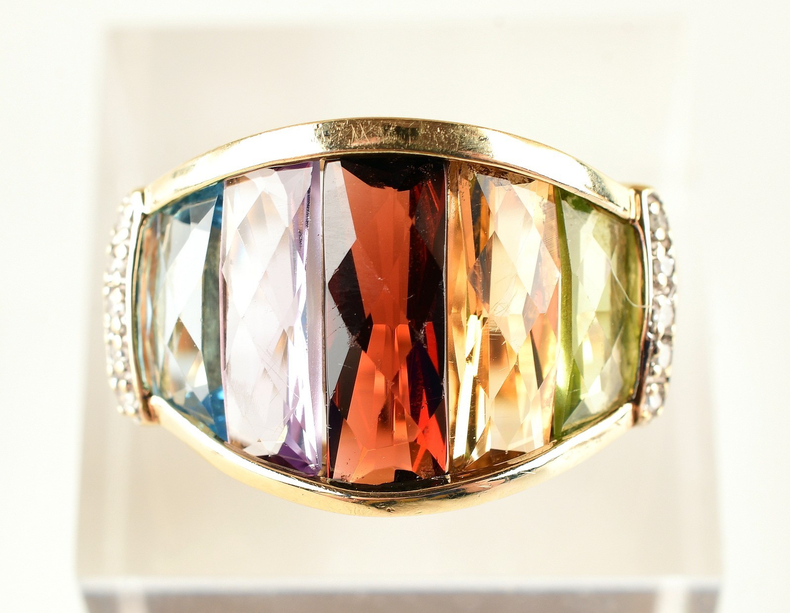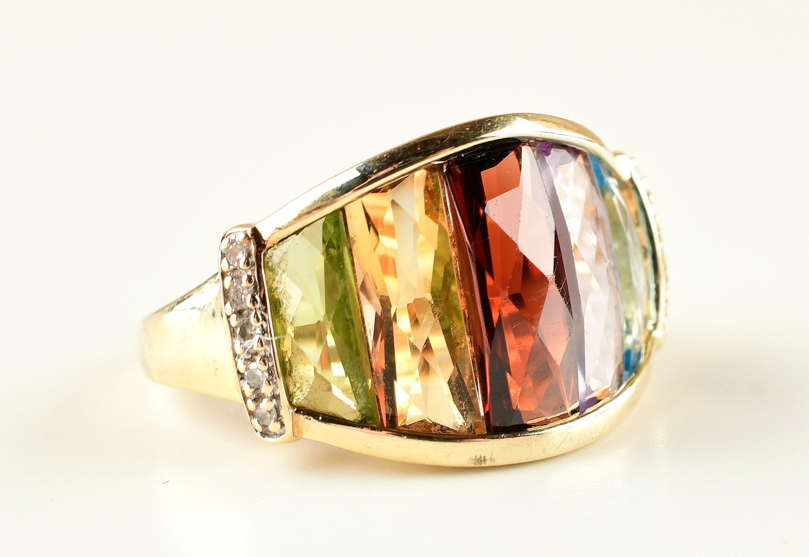 *Women's 10k Yellow Diamond Gold Multi-Stone Multi-Color Ring Size 6